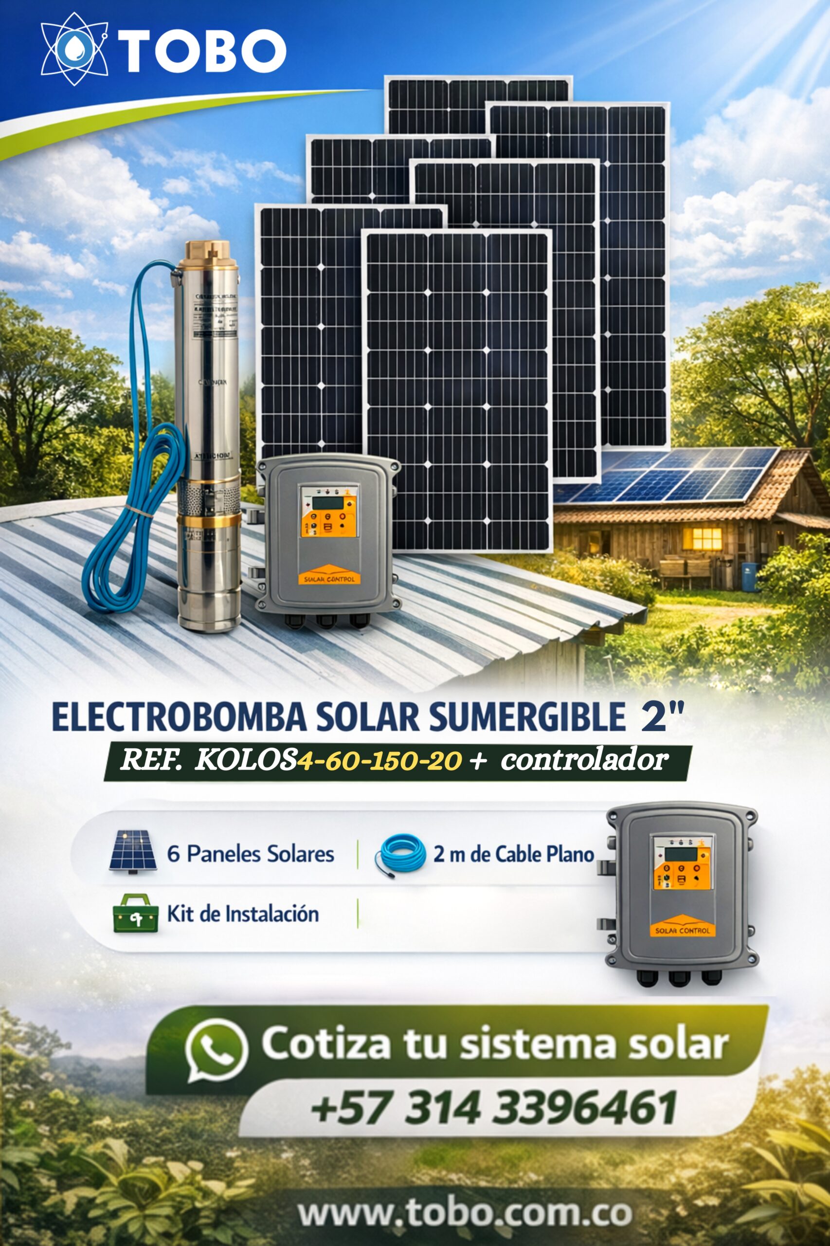 Electrobomba solar sumergible 1 1/4″ ref. KOLOS4-60-150-20 + controlador + Paneles Solares